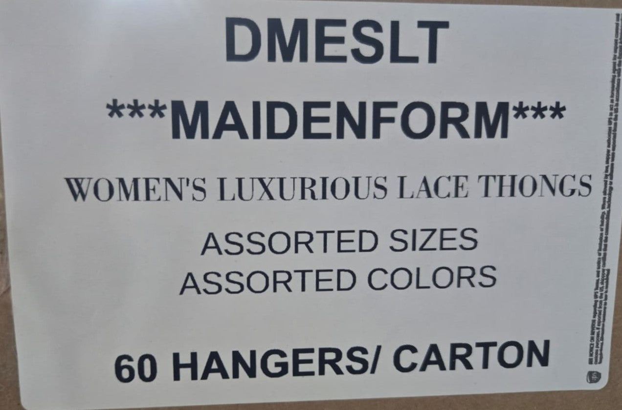 STYLE: DMESLTDESCRIPTION: MAIDENFORM WOMEN'S LUXURIOUS LACE THONGSCOLORS: AssortedSIZES: AssortedPER CASE: 60