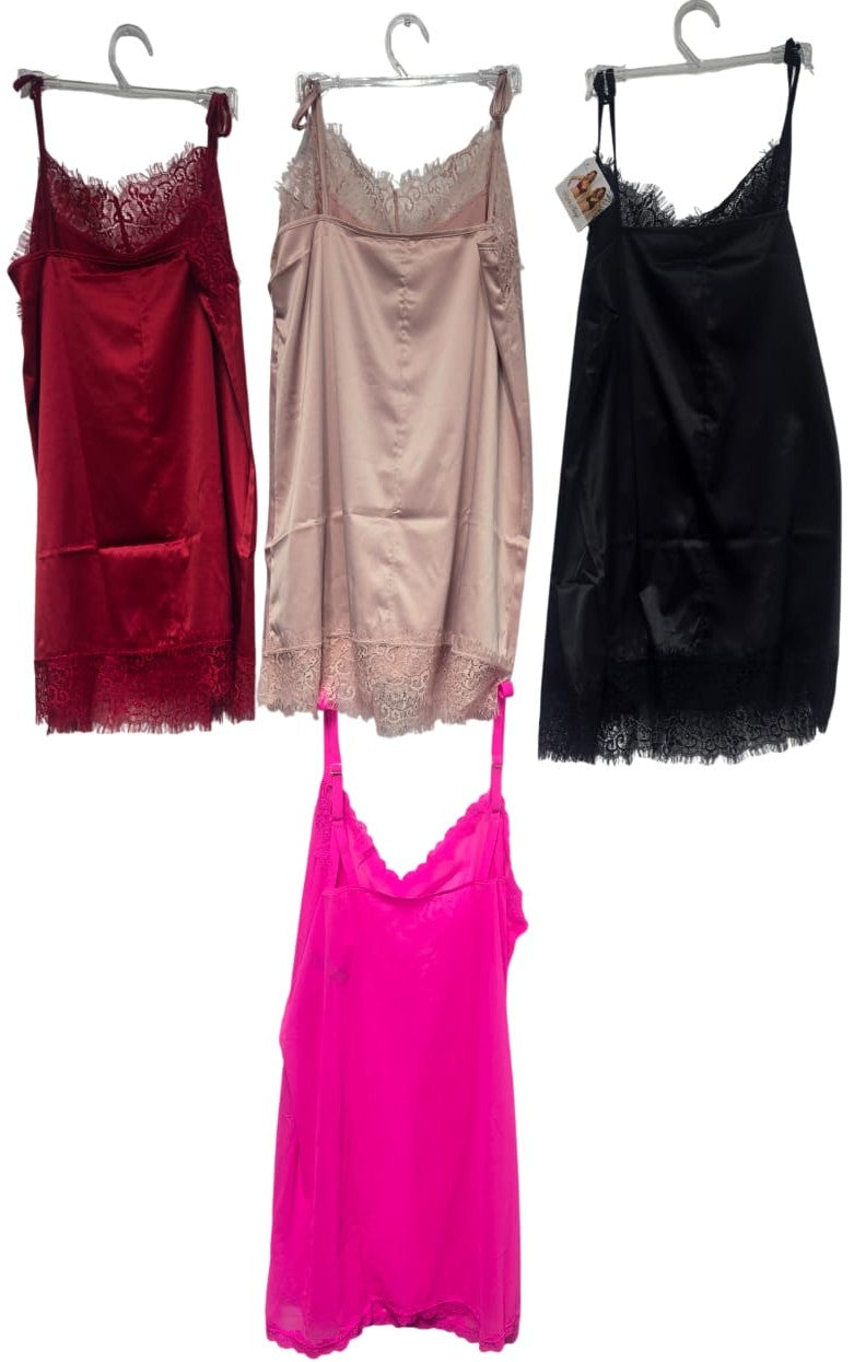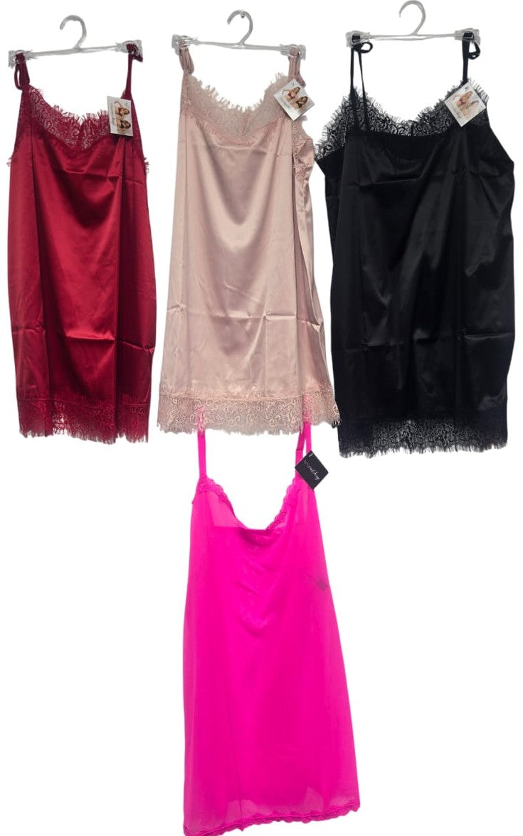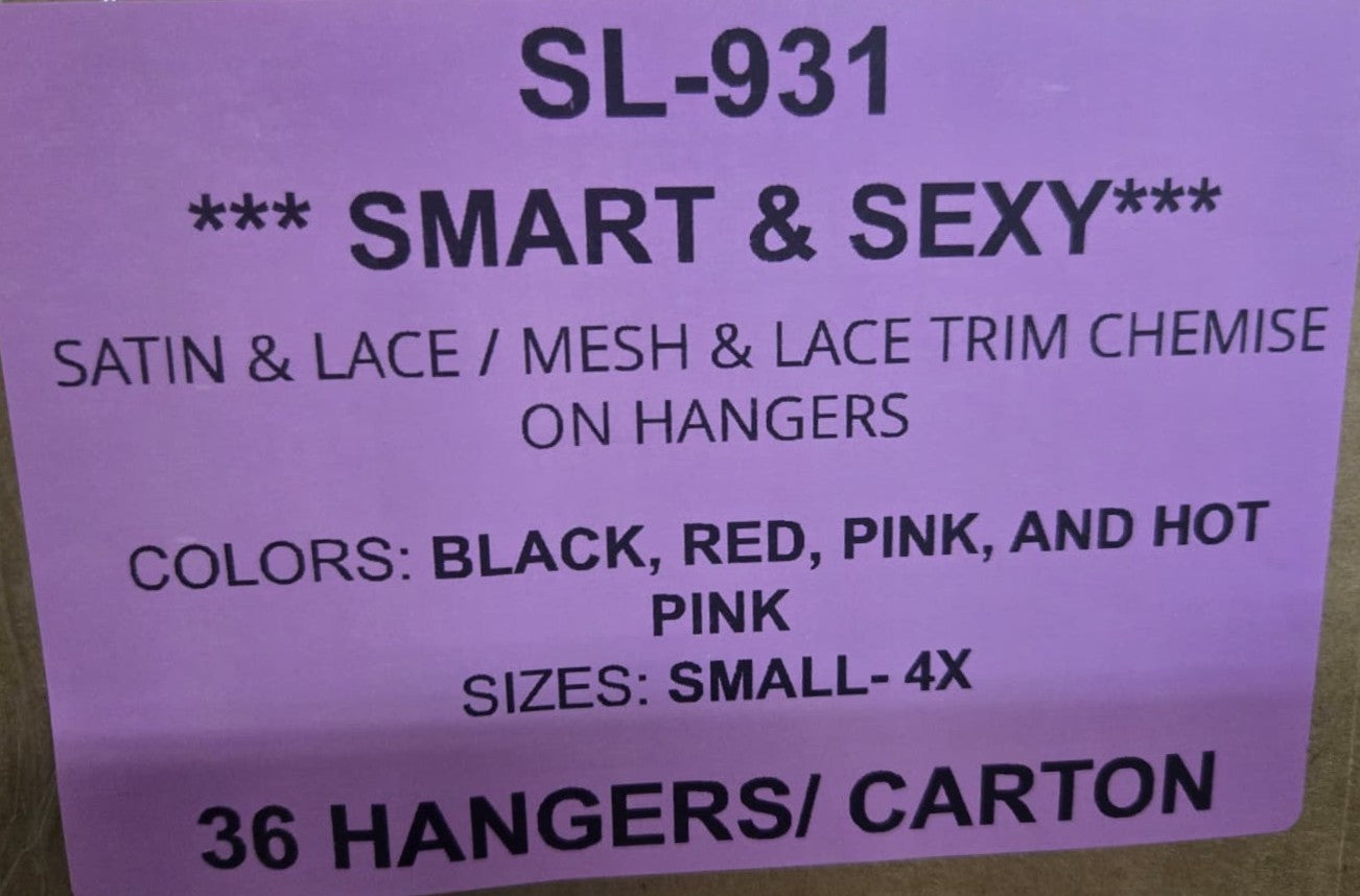STYLE: SL-931DESCRIPTION: SMART & SEXY SATIN & LACE / MESH & LACE TRIM CHEMISECOLORS: Black, Red, Pink, Hot PinkSIZES: Small-4XPER CASE: 36