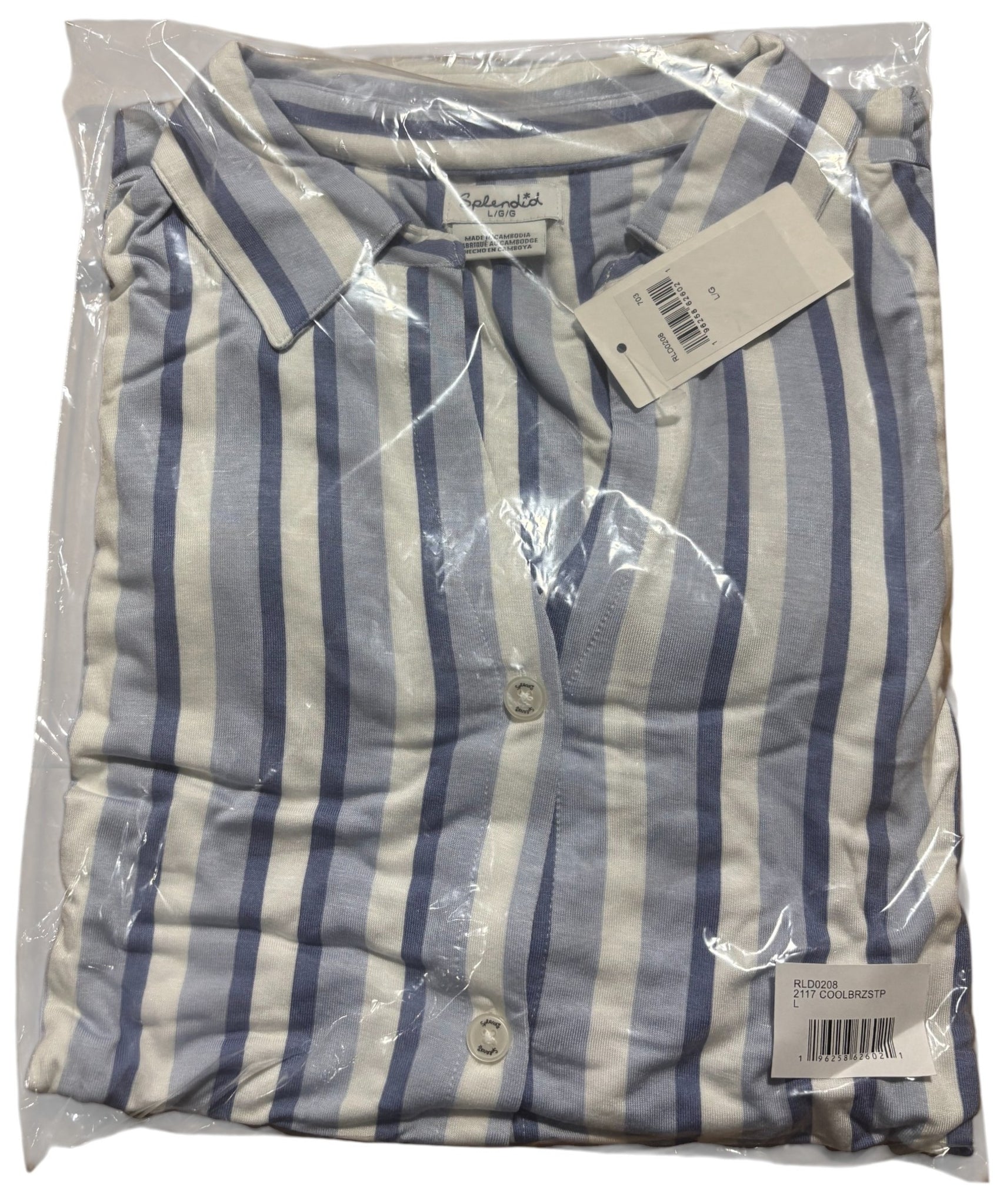 STYLE: RLDO208DESCRIPTION: SPLENDID WOMENS SHORT SLEEVE PRINTED ROMPERCOLORS: Cool Blue StripeSIZES: AssortedPER CASE: 18