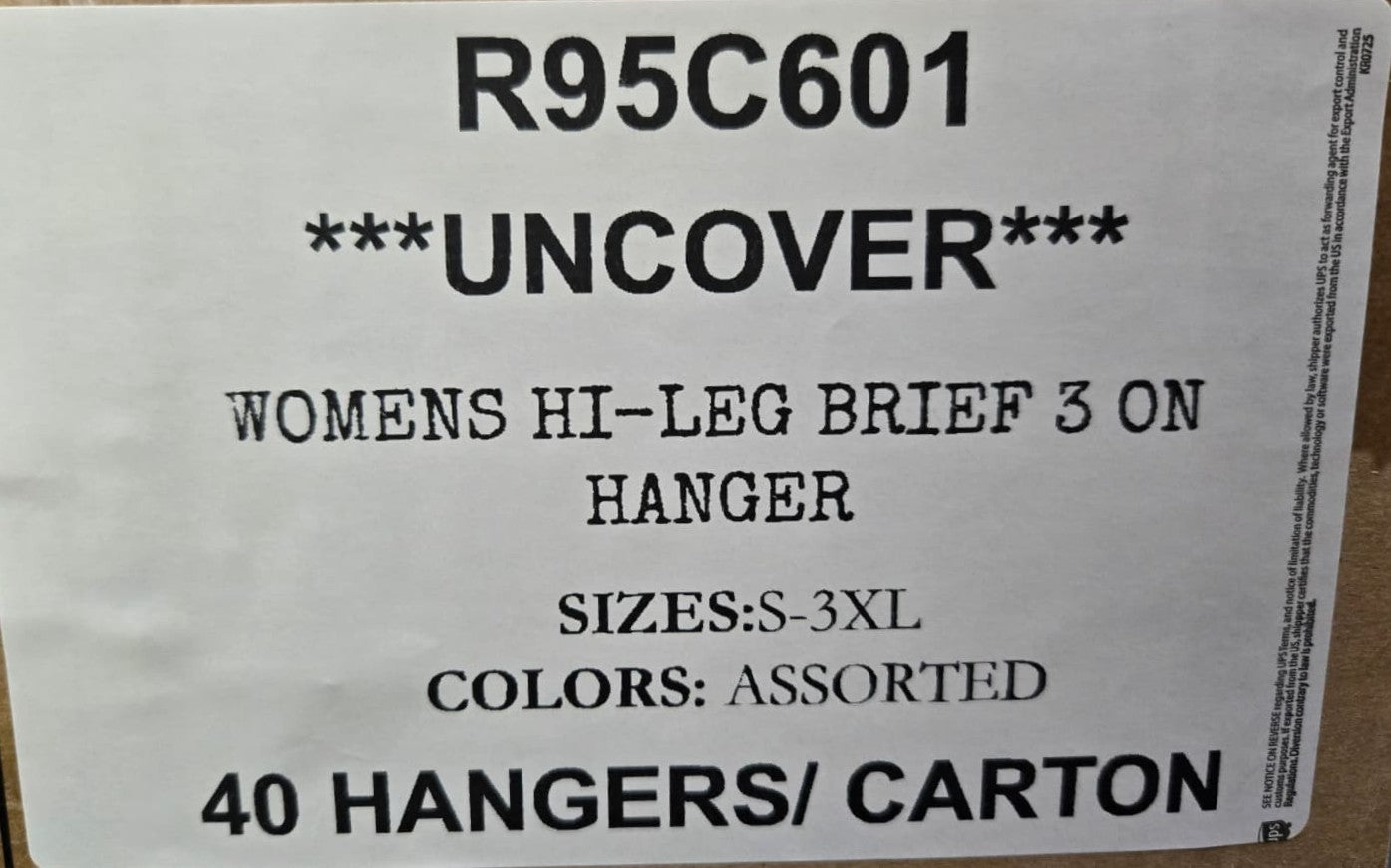 STYLE: R95C601DESCRIPTION: UNCOVER WOMENS HI-LEG BRIEFCOLORS: AssortedSIZES: S-3XLPER CASE: 40
